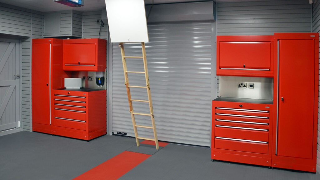 There’s obviously little point in fitting beautiful cabinets which prevent you getting the car in. Unless you’re considering parking it elsewhere, you’ll need to design the storage solution AROUND the car dimensions.