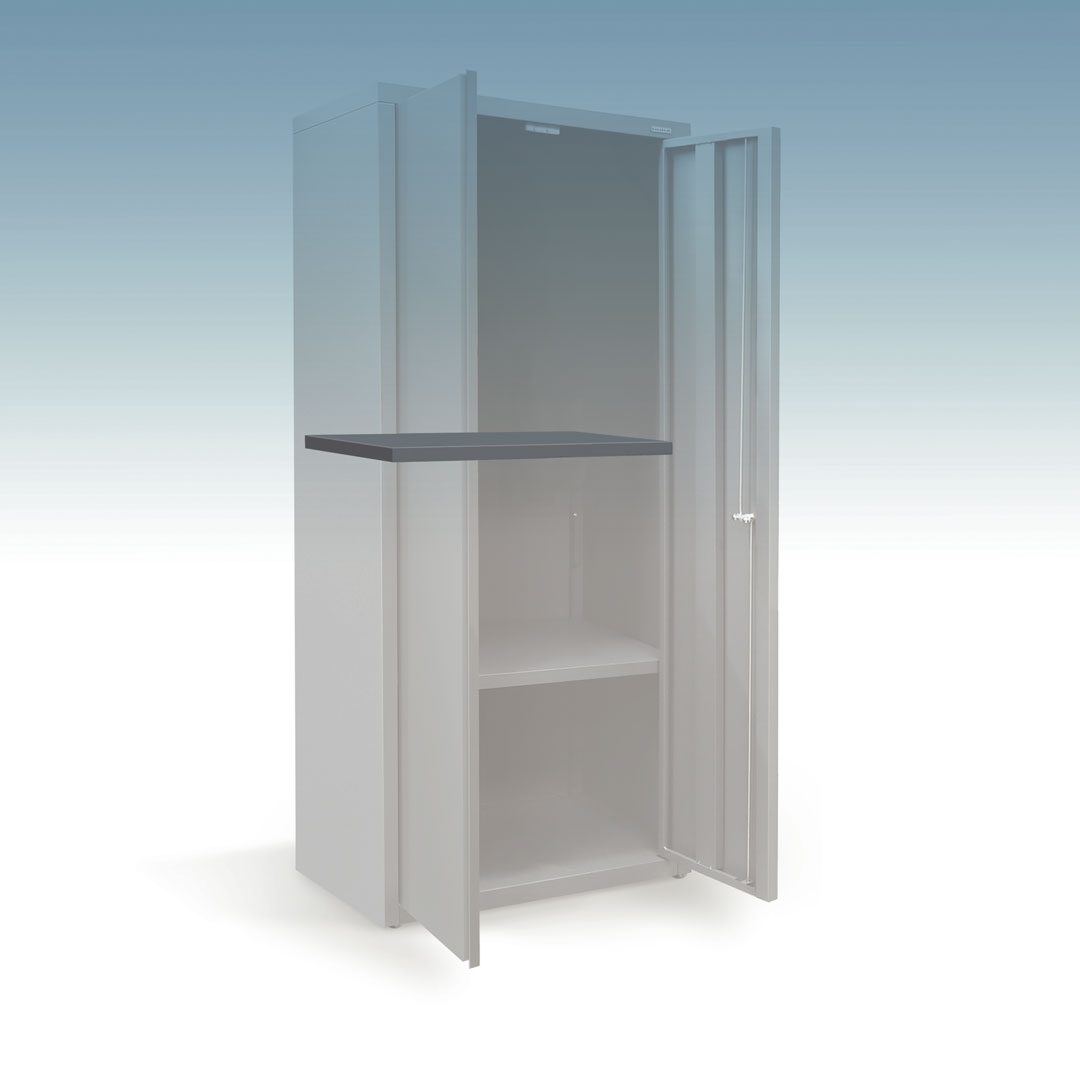 This professional-grade storage cupboard offers secure, versatile storage in a compact footprint. Standing 2 metres tall, it features an adjustable-height internal shelf and a 20kg uniform load capacity, with the option to add extra shelves or a coat rail for tailored organisation.