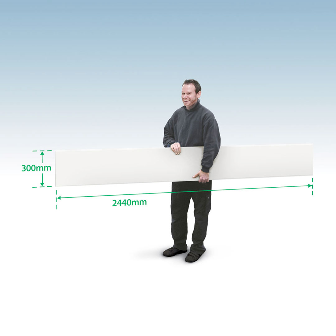 Available in 2140mm and 2440mm lengths (both 300mm wide), the tiles are finished in matt white to enhance light reflection and create a smart, uniform appearance.