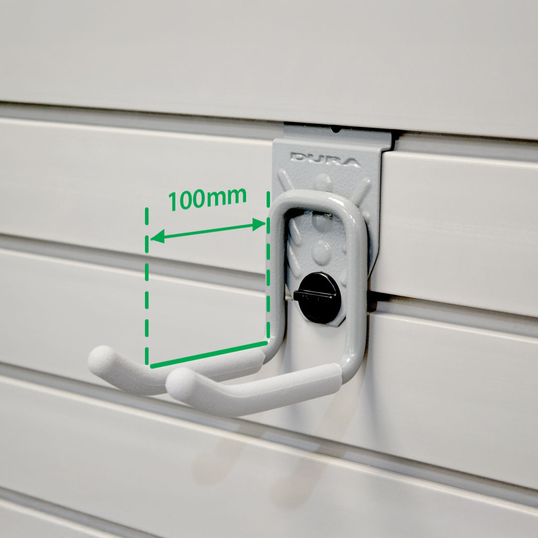 This two-prong hook is available in two sizes, offering a 100mm or 190mm reach and features a light grey rubberised coating, making it perfect for storing a variety of tools securely and safely. Its versatile design is ideal for keeping your essentials organised and within easy reach.