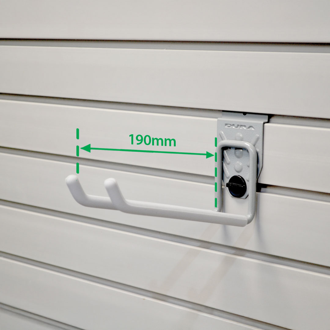This two-prong hook is available in two sizes, offering a 100mm or 190mm reach and features a light grey rubberised coating, making it perfect for storing a variety of tools securely and safely. Its versatile design is ideal for keeping your essentials organised and within easy reach.
