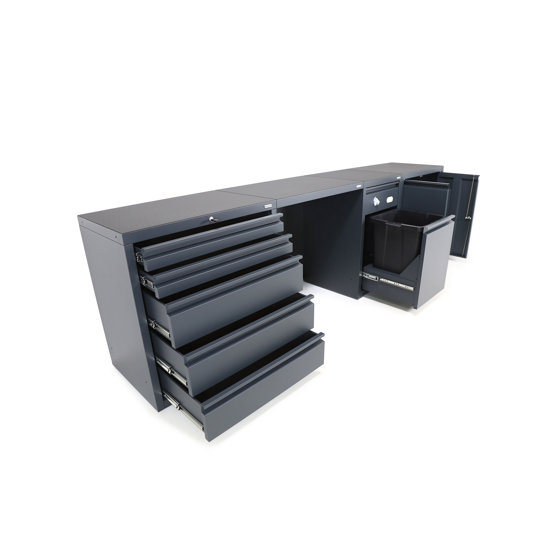 Configured to create productive spaces, low-level package two combines storage with waste management capabilities within just W 3300 x D 600 x H 950 mm of space, whilst creating a generous 3.3m of worksurface.