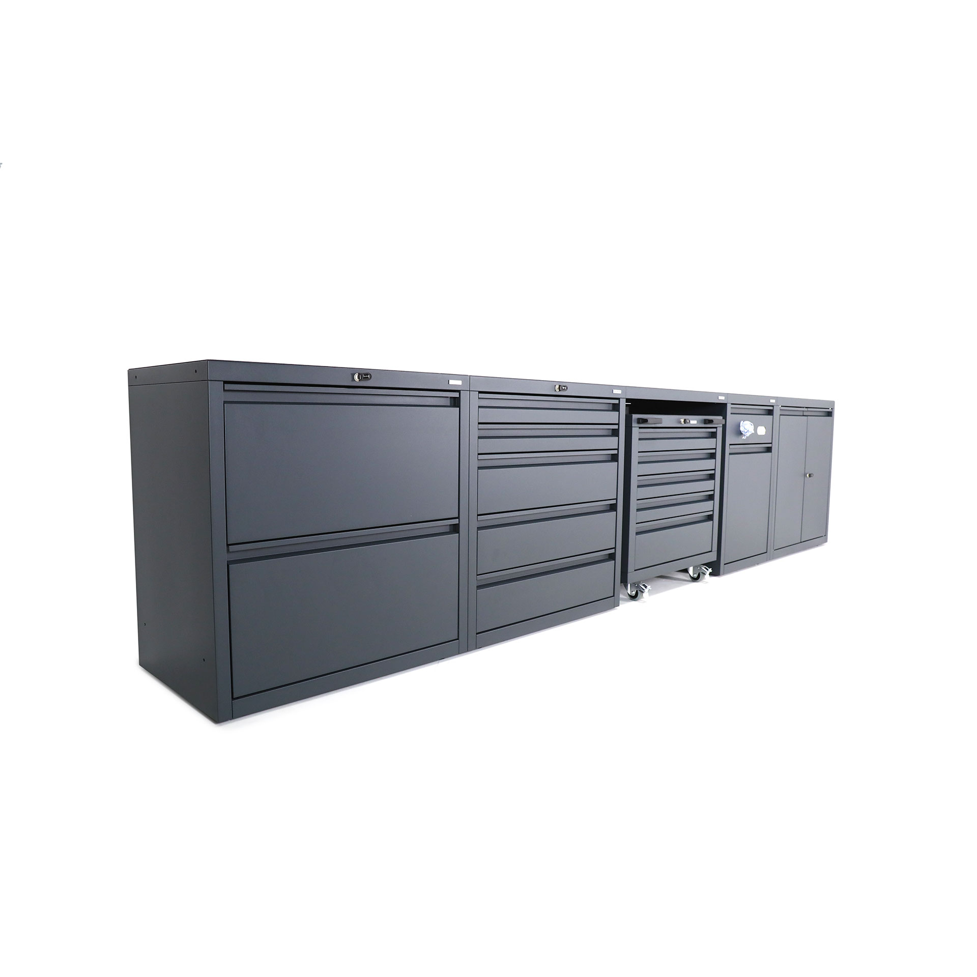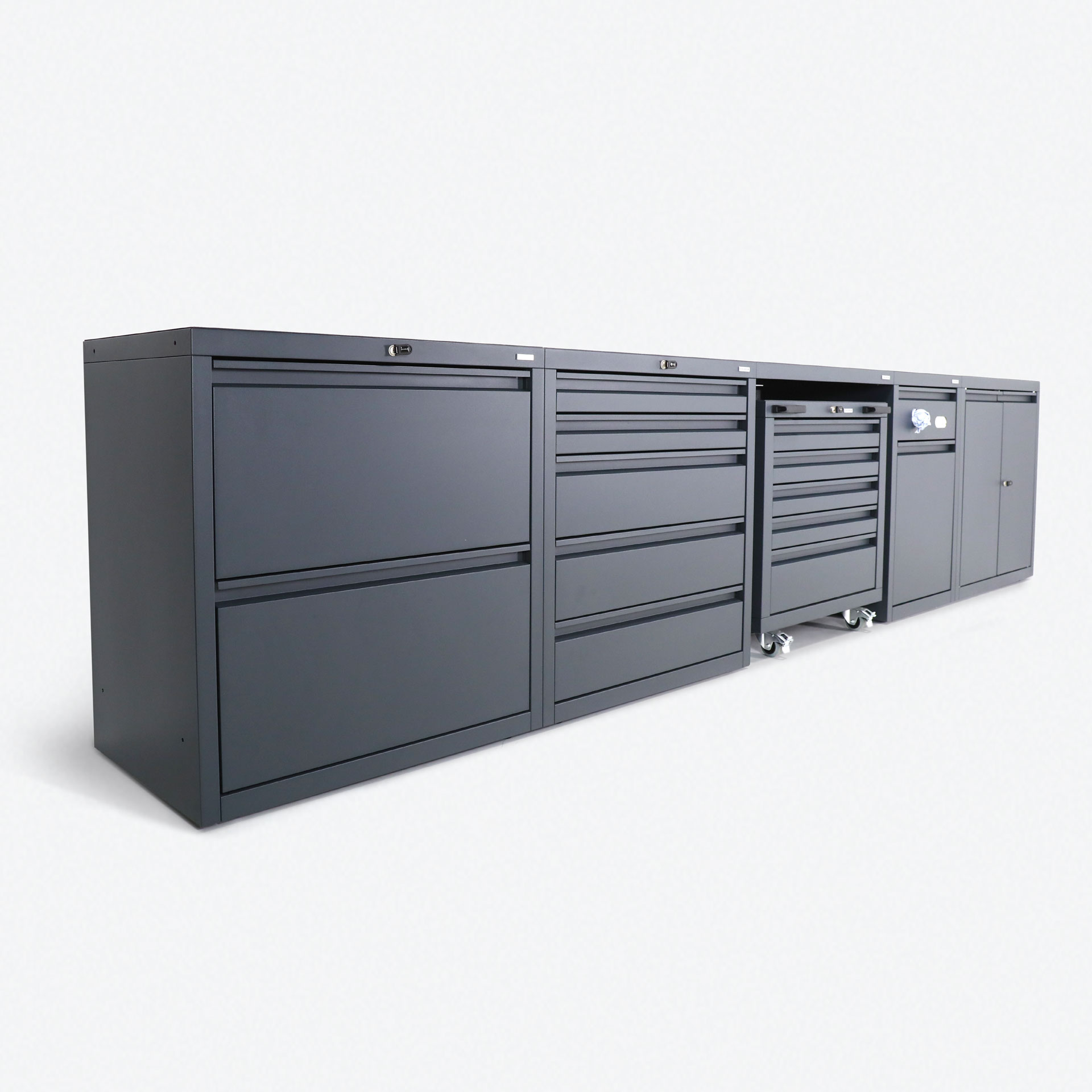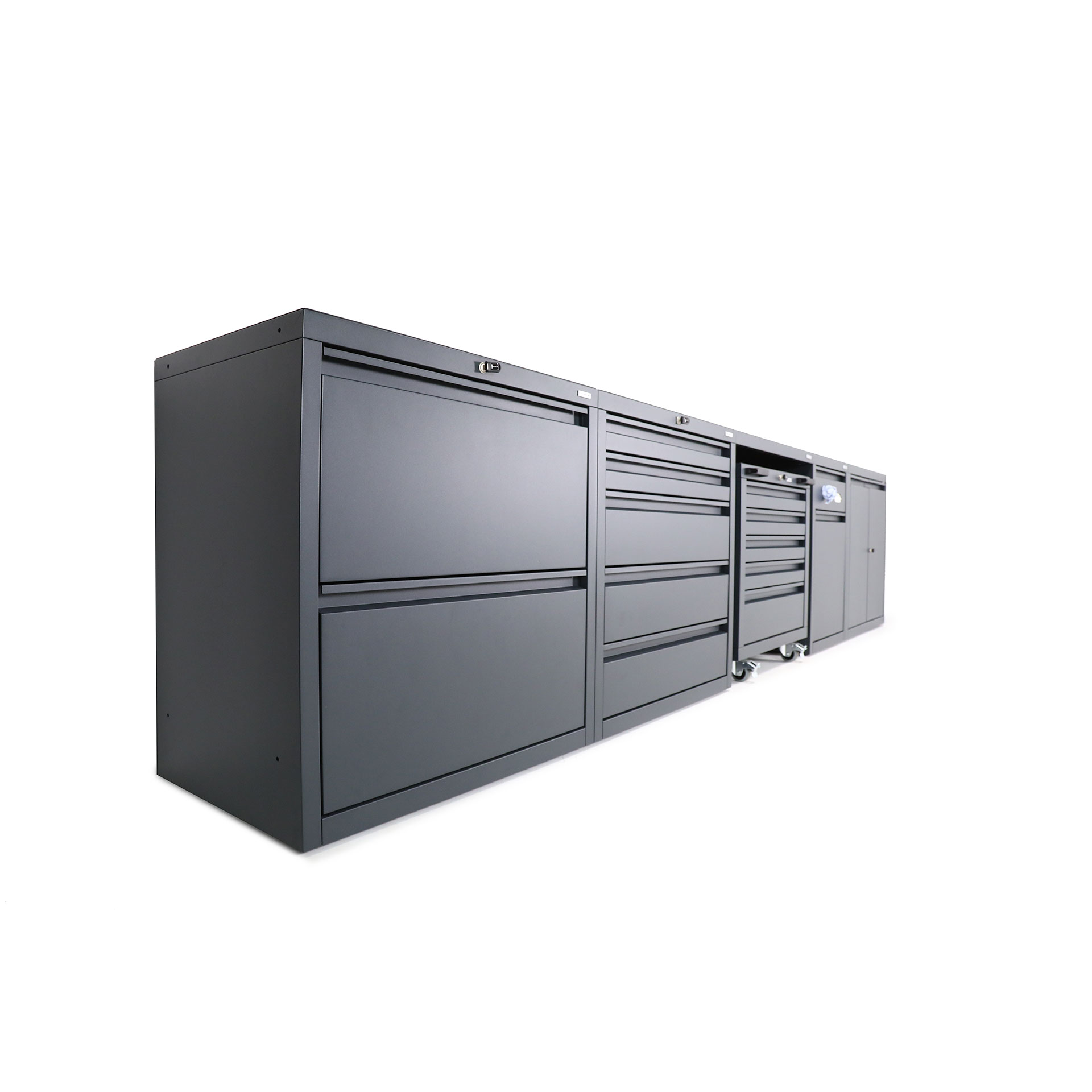 When purchasing low-level combination package three, you can choose either individual keys per unit, or matching keys for all units (excluding mobile under-bench cabinets) at no additional charge. Two keys for each cabinet are supplied.
