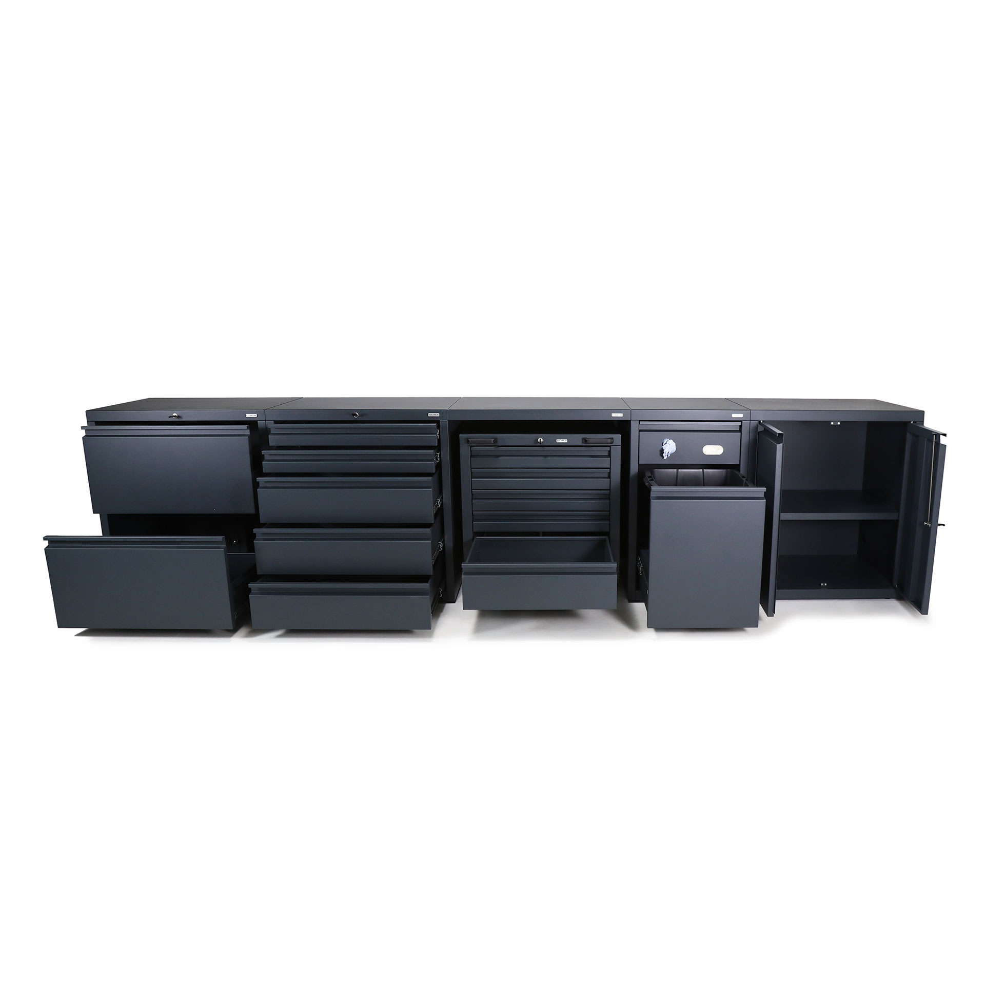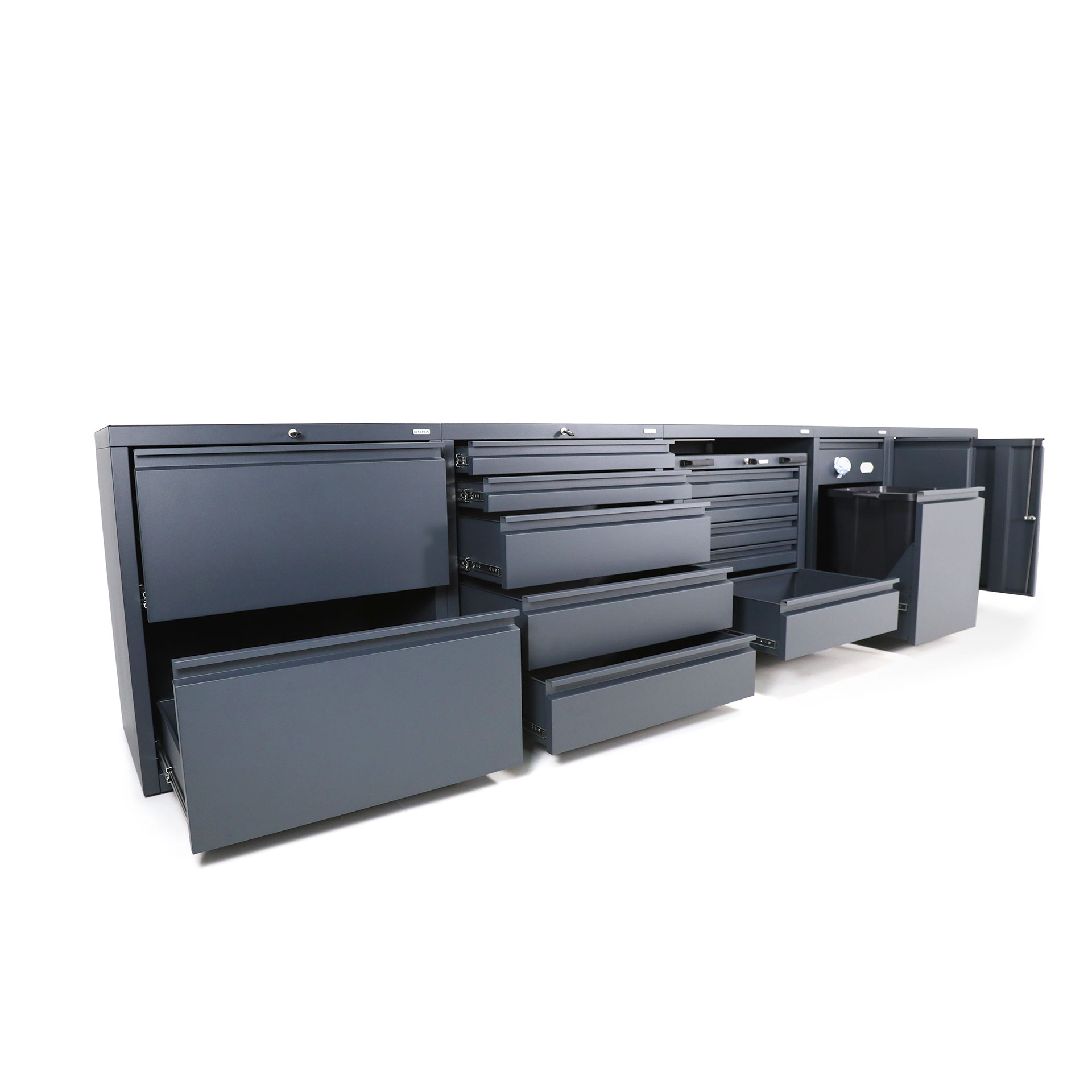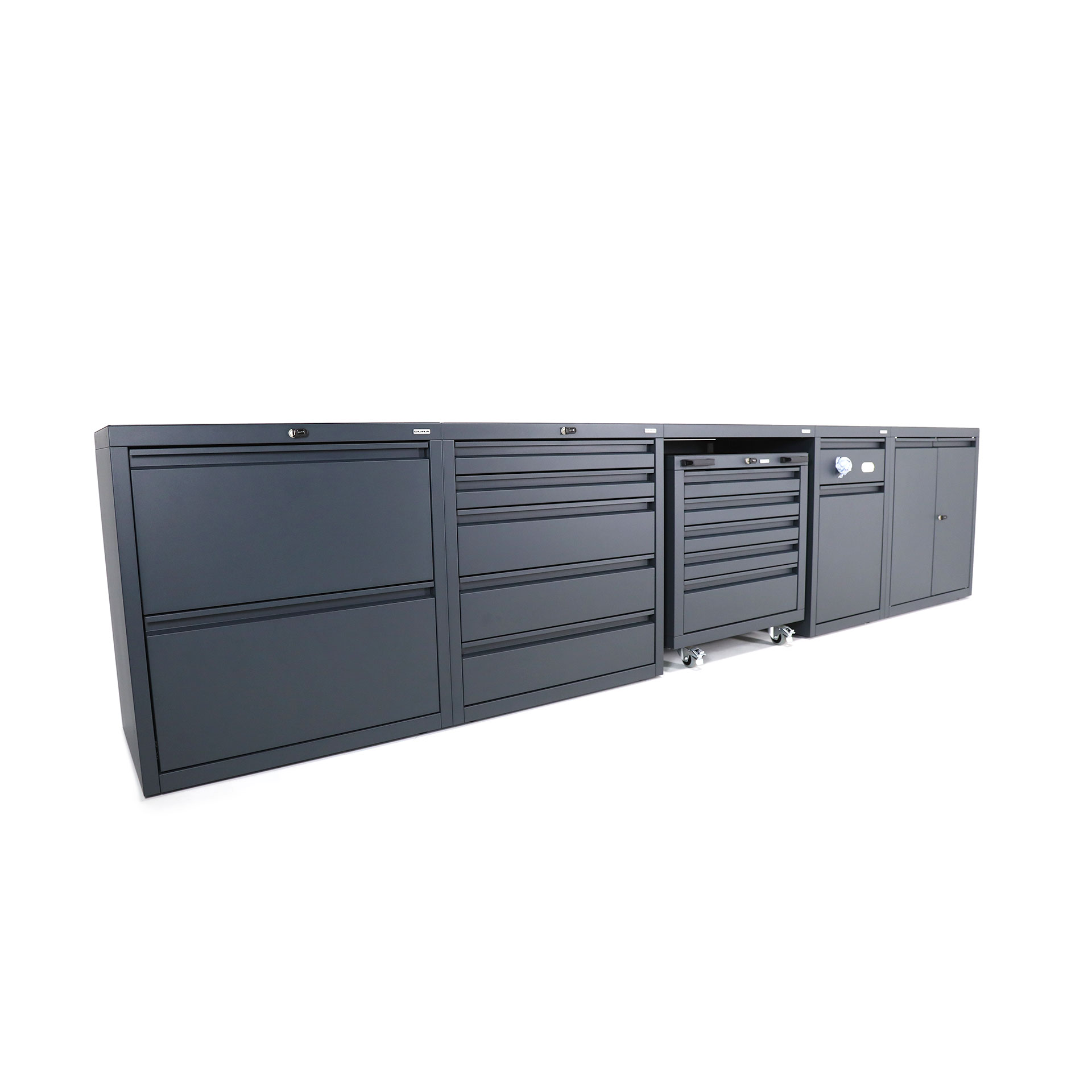When purchasing low-level combination package three, you can choose either individual keys per unit, or matching keys for all units (excluding mobile under-bench cabinets) at no additional charge. Two keys for each cabinet are supplied.