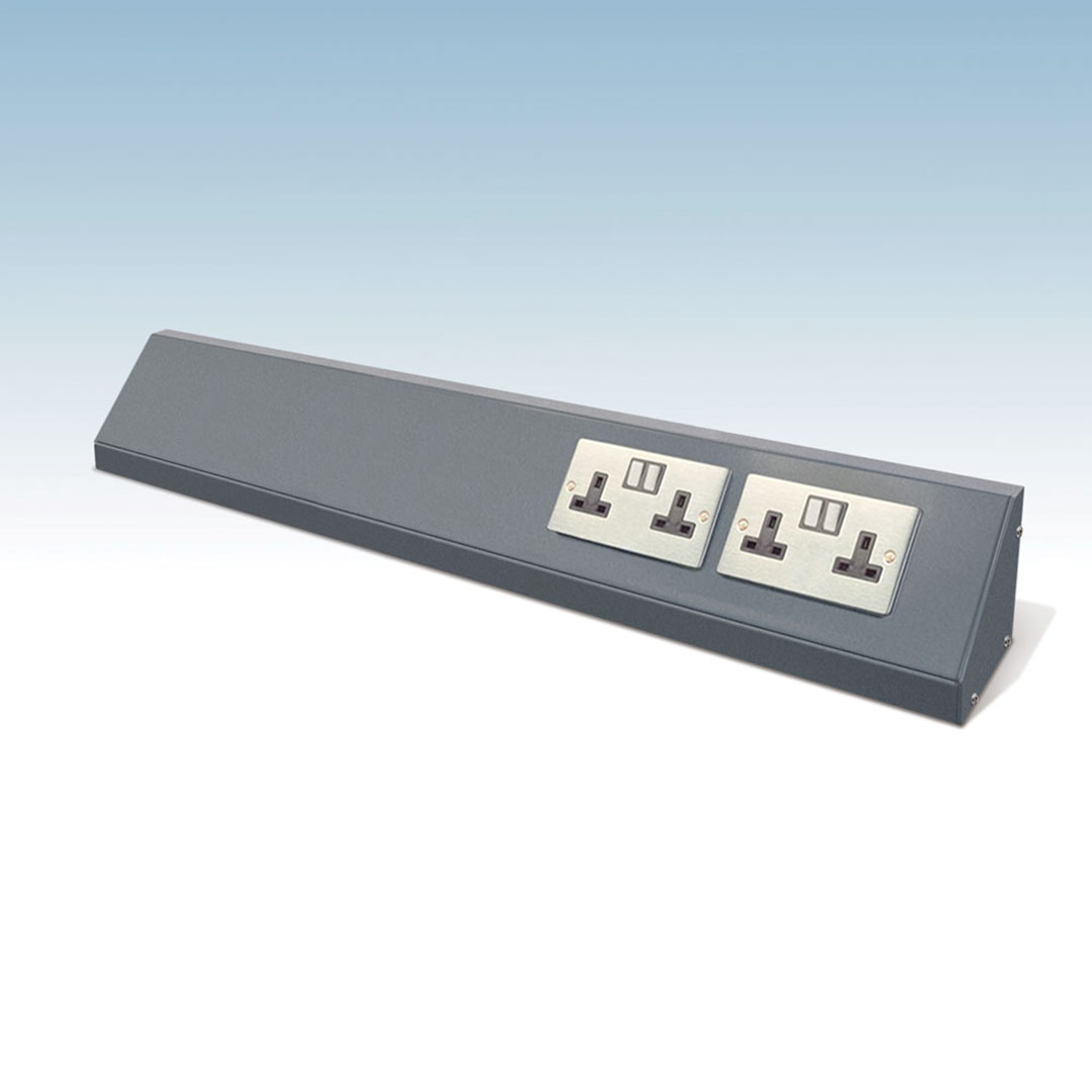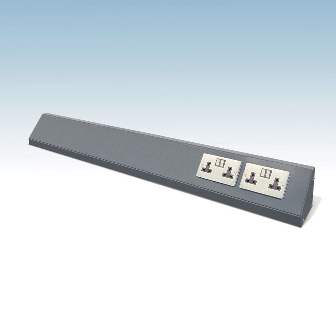 A smart, integrated solution for powering your workspace. This trunking system allows sockets to be neatly mounted to 400 Series base cabinets, angled at 45° for easy access while keeping cables clear of the work surface.