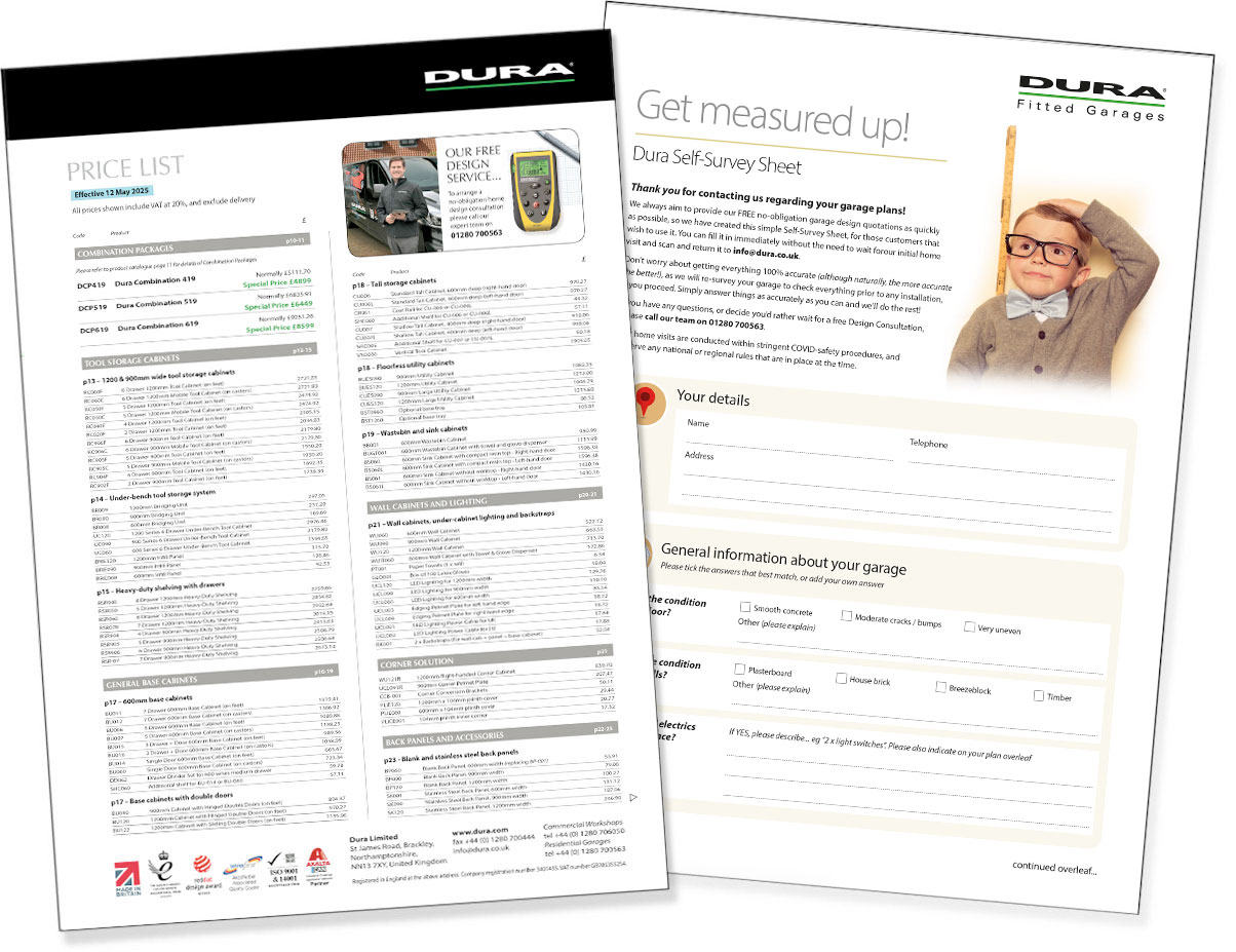 Thank you for your recent enquiry and for requesting a copy of our latest brochures. We hope they help to give you some ideas and inspiration for your new workshop, but should you have any further questions that may not be covered in the brochures then please call 01280 706050 or email info@dura.co.uk. Please feel free to download the a PDF version of either of our brochures via the links below.