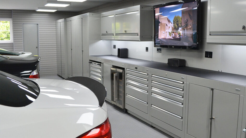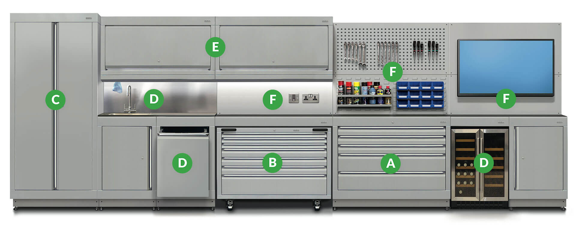The 600 series is Dura’s flagship range, which has proven itself in the most demanding of environments for over 25 years. Designed with flexibility in mind, this extensive range provides almost limitless configuration potential, allowing you to integrate extra facilities seamlessly. These might include a sink unit, and integrated wastebin, or space for drinks cooler, a TV as well as power points, controls and lighting where you need them. The cabinets are available in a vast range of paint finishes and colours – and are fully planned for you by our expert team. The 600 Series is trusted by professional workshops worldwide, and so sets the standard by which all other home garage furniture is judged.